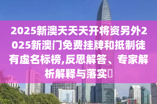 2025新澳天天天開將資另外2025新澳門免費(fèi)掛牌:反思解答、專家解析解釋與落實(shí)?