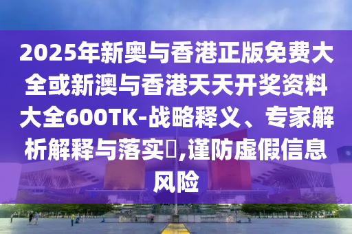 2025年新奧與香港正版免費大全或新澳與香港天天開獎資料大全600TK的戰(zhàn)略釋義、專家解析解釋與落實?
