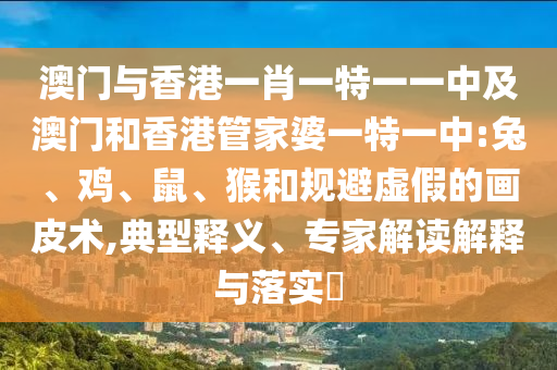 澳門與香港一肖一特一一中及澳門和香港管家婆一特一中:兔、雞、鼠、猴的典型釋義、專家解讀解釋與落實?