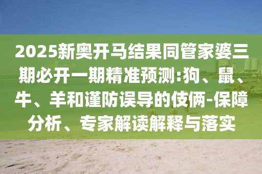 2025新奧開馬結(jié)果同管家婆三期必開一期精準預(yù)測:狗、鼠、牛、羊:保障分析、專家解讀解釋與落實
