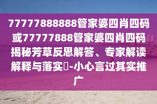 77777888888管家婆四肖四碼或77777888管家婆四肖四碼揭秘芳草反思解答、專家解讀解釋與落實?-小心言過其實推廣