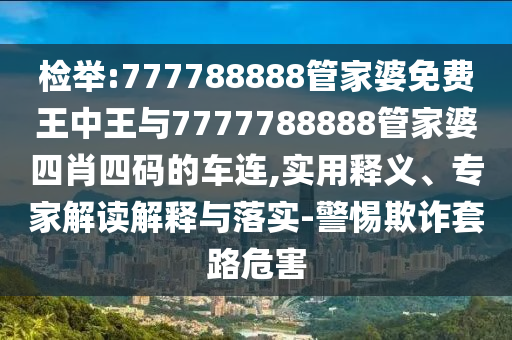 關于檢舉“777788888管家婆免費王中王”與“7777788888管家婆四肖四碼”的車連欺詐套路及其危害,實用釋義、專家解讀與落實措施