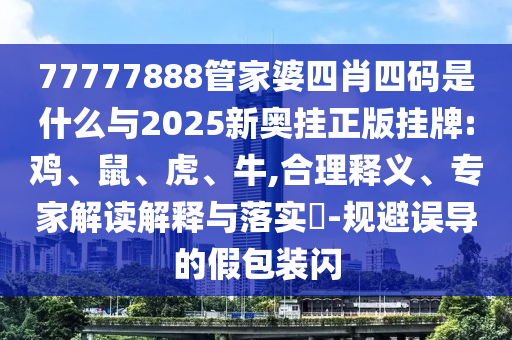 關(guān)于關(guān)鍵詞“77777888管家婆四肖四碼是什么”與“2025新奧掛正版掛牌:雞、鼠、虎、牛”的釋義、解讀與落實,以及公眾如何警惕虛假宣傳的問題,以下是我的文章。