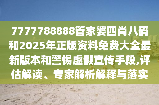 7777788888管家婆四肖八碼”和“2025年正版資料免費大全最新版本”的評估解讀、專家解析解釋與落實,以及警惕虛假宣傳手段的探討