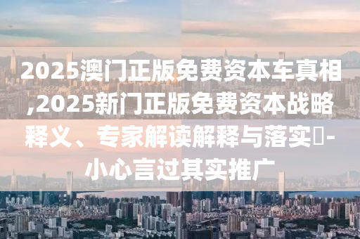 2025澳門正版免費資本車真相,2025新門正版免費資本戰(zhàn)略釋義、專家解讀解釋與落實?-小心言過其實推廣