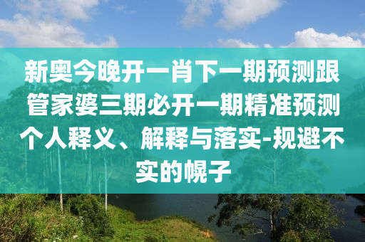 新奧今晚開一肖下一期預(yù)測(cè)”與“管家婆三期必開一期精準(zhǔn)預(yù)測(cè)”的個(gè)人釋義、解釋與落實(shí),以及警惕虛假宣傳的重要性