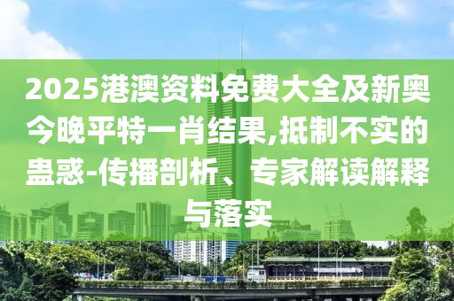 2025港澳資料免費(fèi)大全及新奧今晚平特一肖結(jié)果的傳播剖析、專(zhuān)家解讀解釋與落實(shí)