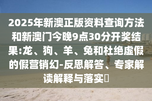 2025年新澳正版資料查詢方法和新澳門今晚9點30分開獎結(jié)果:龍、狗、羊、兔和杜絕虛假的假營銷幻-反思解答、專家解讀解釋與落實?