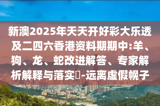新澳2025年天天開好彩大樂透及二四六香港資料期期中:羊、狗、龍、蛇的改進解答、專家解析解釋與落實?