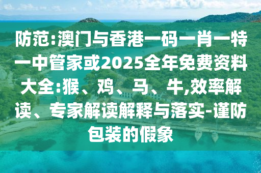 澳門與香港一碼一肖一特一中管家或2025全年免費資料大全:猴、雞、馬、牛:效率解讀、專家解讀解釋與落實