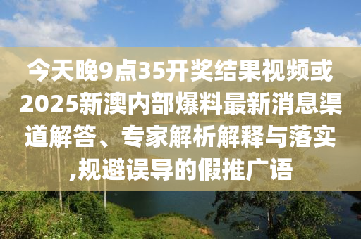 今天晚9點35開獎結(jié)果視頻或2025新澳內(nèi)部爆料最新消息渠道解答、專家解析解釋與落實,規(guī)避誤導(dǎo)的假推廣語