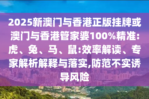 2025新澳門與香港正版掛牌或澳門與香港管家婆100%精準(zhǔn):虎、兔、馬、鼠:效率解讀、專家解析解釋與落實,防范不實誘導(dǎo)風(fēng)險