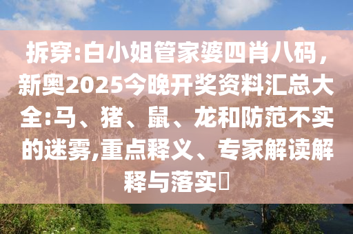 關于拆穿“白小姐管家婆四肖八碼”、新奧2025今晚開獎資料匯總以及防范不實宣傳的迷霧的重點釋義、專家解讀與落實