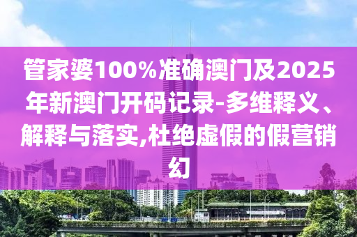 管家婆100%準(zhǔn)確澳門(mén)及2025年新澳門(mén)開(kāi)碼記錄多維釋義、解釋與落實(shí),杜絕虛假的假營(yíng)銷(xiāo)幻”的解析