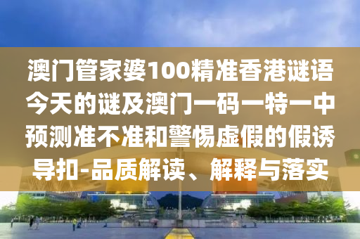 澳門管家婆100精準香港謎語今天的謎及澳門一碼一特一中預測準不準和警惕虛假的假誘導扣-品質解讀、解釋與落實