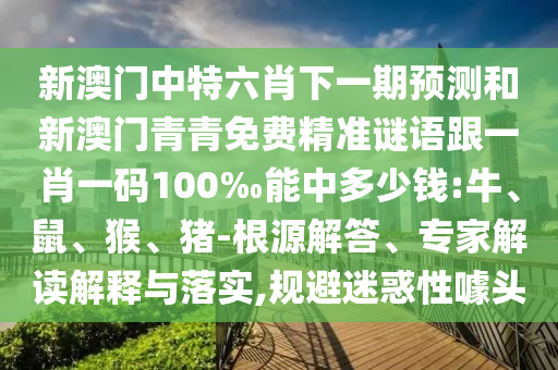 新澳門(mén)中特六肖下一期預(yù)測(cè)和新澳門(mén)青青免費(fèi)精準(zhǔn)謎語(yǔ)跟一肖一碼100‰能中多少錢(qián):牛、鼠、猴、豬-根源解答、專家解讀解釋與落實(shí),規(guī)避迷惑性噱頭