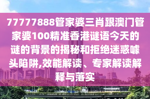 77777888管家婆三肖跟澳門管家婆100精準香港謎語今天的謎的背景的揭秘的拒絕迷惑噱頭陷阱”的效能解讀、專家解讀解釋與落實