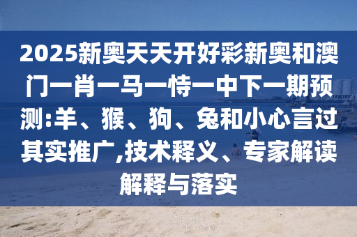 2025新奧天天開好彩新奧和澳門一肖一馬一恃一中下一期預測:羊、猴、狗、兔和小心言過其實推廣,技術釋義、專家解讀解釋與落實