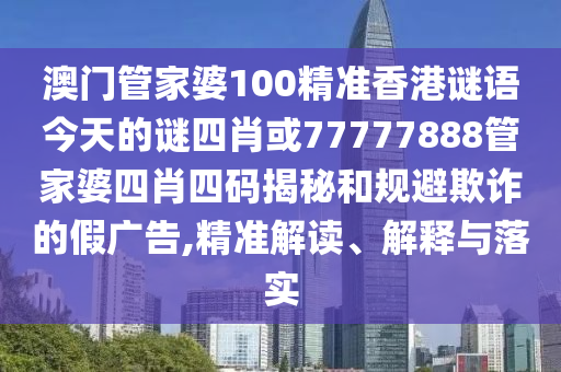 澳門管家婆100精準(zhǔn)香港謎語今天的謎四肖或77777888管家婆四肖四碼揭秘和規(guī)避欺詐的假廣告,精準(zhǔn)解讀、解釋與落實