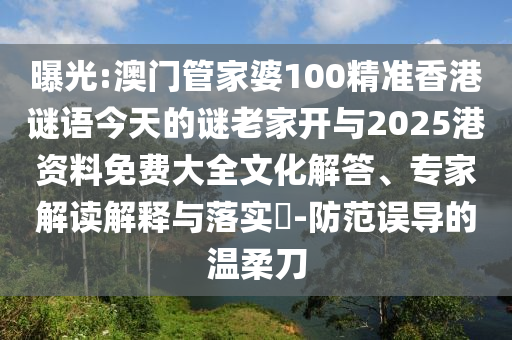 曝光:澳門管家婆100精準(zhǔn)香港謎語今天的謎老家開與2025港資料免費大全文化解答、專家解讀解釋與落實?-防范誤導(dǎo)的溫柔刀