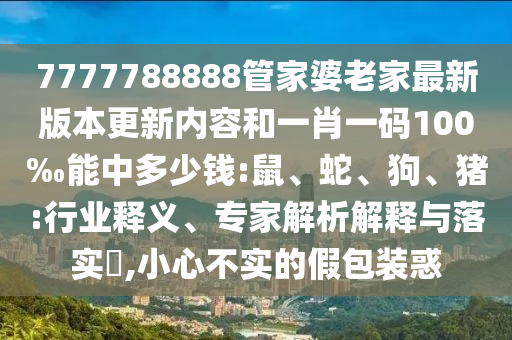 7777788888管家婆老家最新版本更新內(nèi)容和一肖一碼100‰能中多少錢:鼠、蛇、狗、豬:行業(yè)釋義、專家解析解釋與落實?,小心不實的假包裝惑